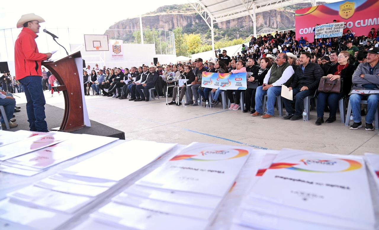 Santiago Papasquiaro, Dgo.– Con la entrega de más de 200 títulos de propiedad, cientos de familias en Santiago Papasquiaro obtienen certeza jurídica sobre su patrimonio y la posibilidad de acceder a programas de mejoramiento de vivienda —como cuartos, techos, baños, tinacos y calentadores solares— en una jornada de trabajo donde el gobernador Esteban Villegas Villarreal, junto a la presidenta municipal Karen Pérez, escucharon y atendieron las necesidades de los beneficiarios.
