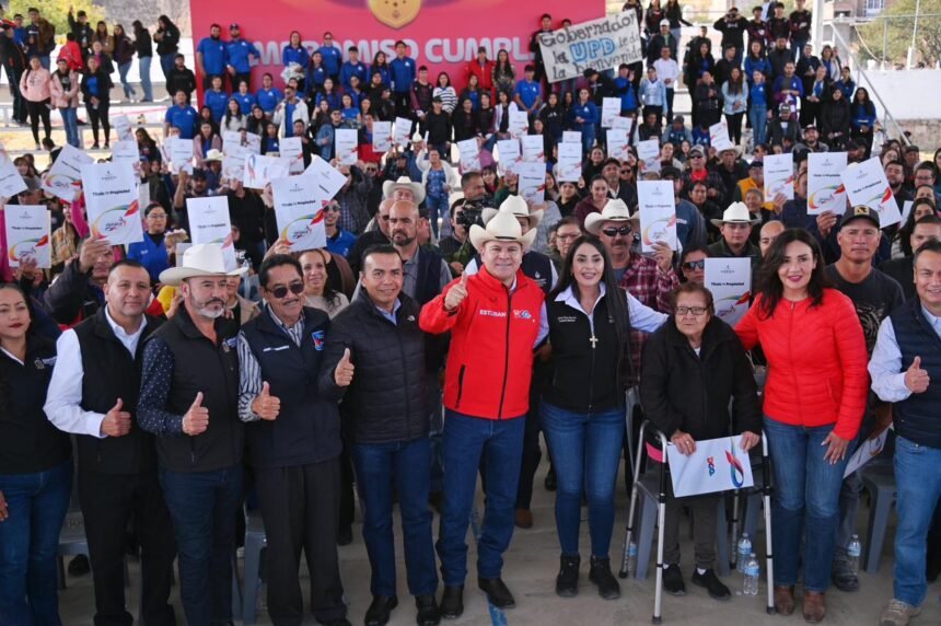 Santiago Papasquiaro, Dgo.– Con la entrega de más de 200 títulos de propiedad, cientos de familias en Santiago Papasquiaro obtienen certeza jurídica sobre su patrimonio y la posibilidad de acceder a programas de mejoramiento de vivienda —como cuartos, techos, baños, tinacos y calentadores solares— en una jornada de trabajo donde el gobernador Esteban Villegas Villarreal, junto a la presidenta municipal Karen Pérez, escucharon y atendieron las necesidades de los beneficiarios.