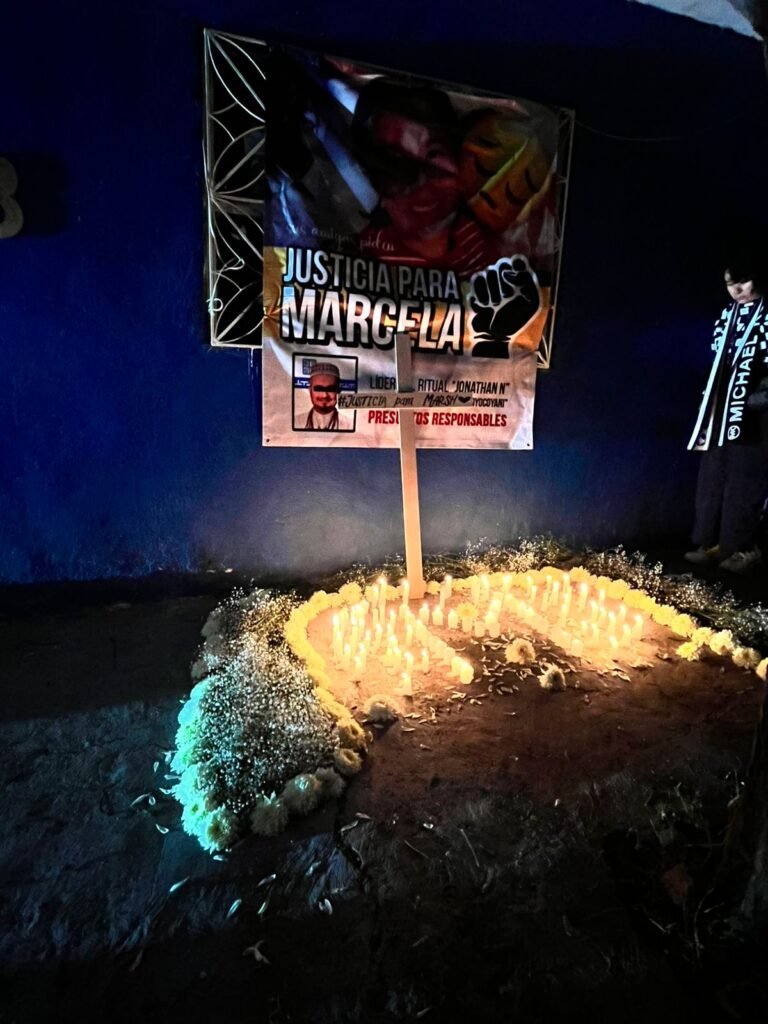 Un grupo de amistades realizaron un ritual de despedida para Marcela Alcázar, lo hicieron con un encendido de velas en el lugar donde perdió la vida, en la calle Rubén Jaramillo de la Colonia Villa de Guadalupe.