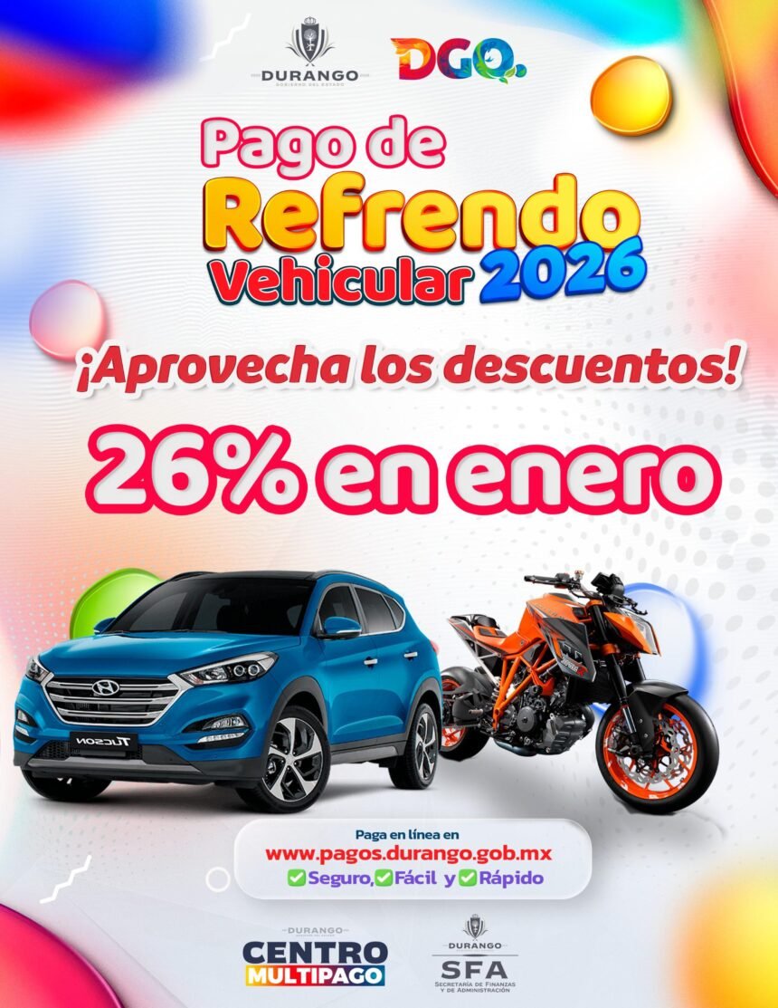 El Gobierno del Estado amplió hasta el próximo 2 de febrero la vigencia del 26% de descuento en el refrendo vehicular 2026, debido a que el cierre de enero coincide con el fin de semana, informó la Secretaría de Finanzas y de Administración (SFA).