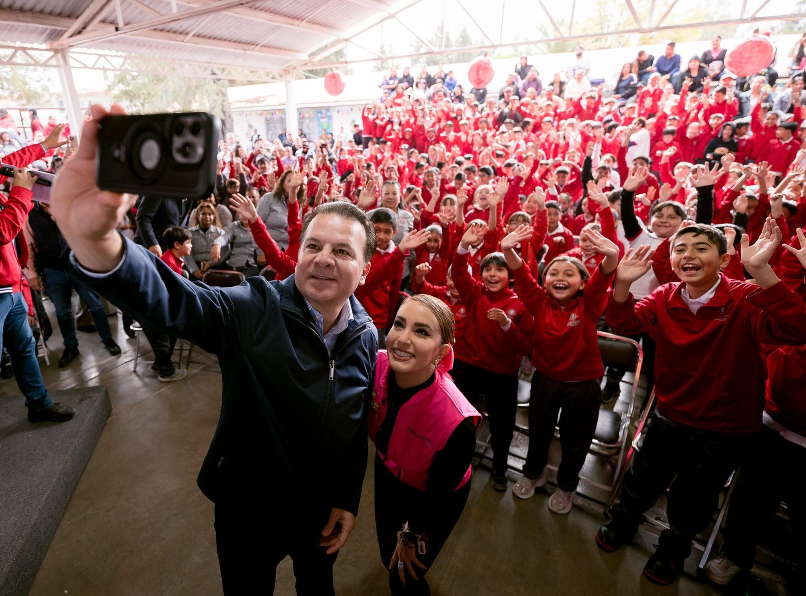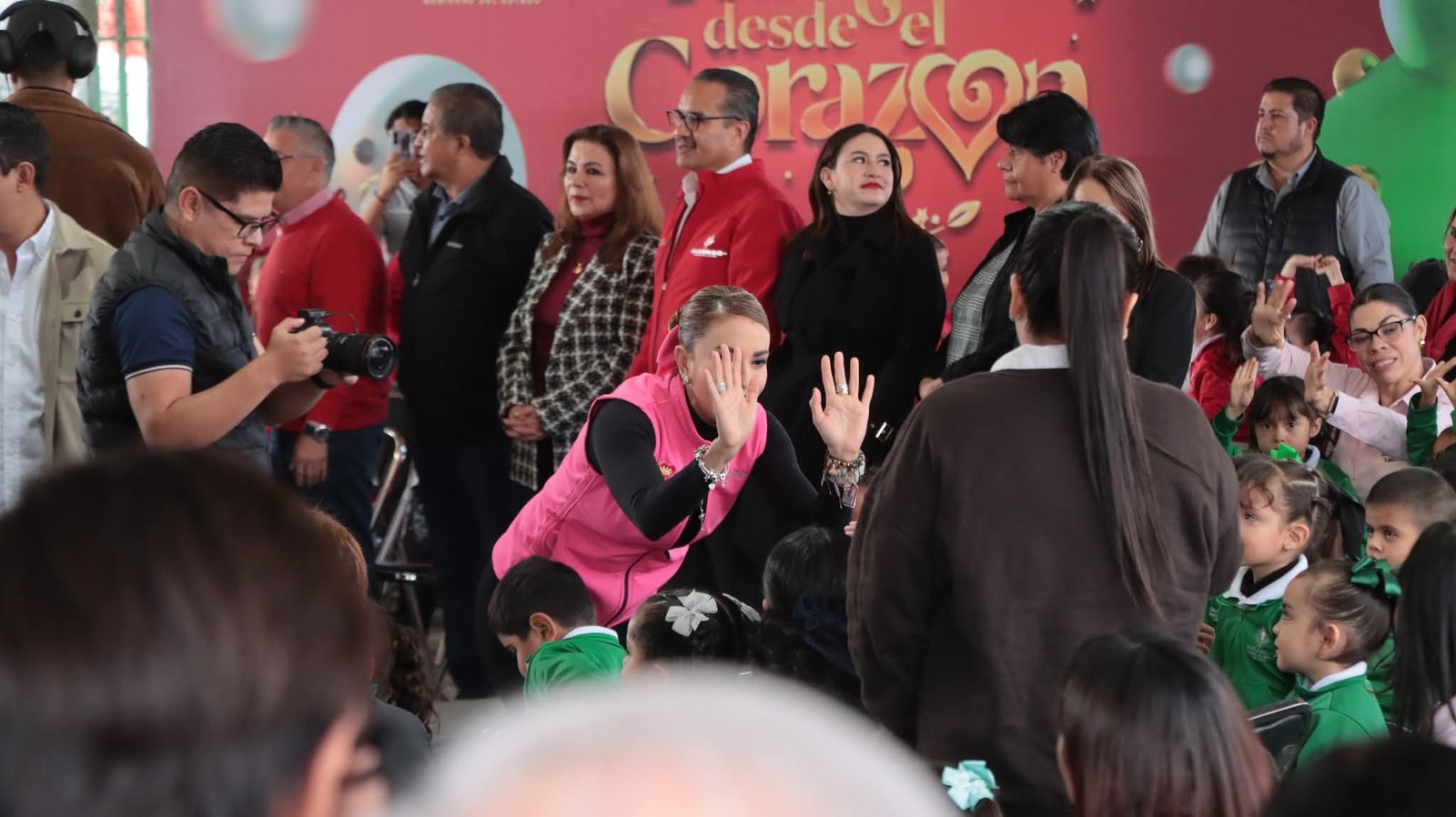 Los regalos partieron en una caravana navideña organizada en 15 rutas que permitirán llegar a 4 mil 223 escuelas de todo el estado, garantizando que cada obsequio llegue directamente a manos de niñas y niños en sus centros escolares.Durante la entrega de obsequios y convivencias con los niños, Marisol Rosso dijo, “ya viene la fecha más bonita del año, y desde hoy nos convertimos en duendes para entregar 300 mil juguetes y llevar sonrisas con mucho amor a todo el estado”, mientras repartía juguetes y aguinaldos entre porras y gritos de “¡Feliz Navidad!”.