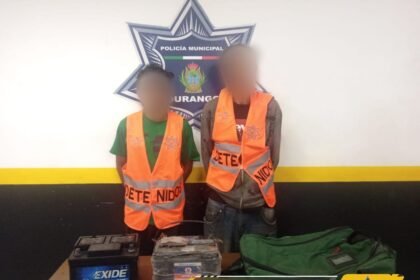 Durango, Dgo. La policía municipal detuvo a dos sujetos por robo de…