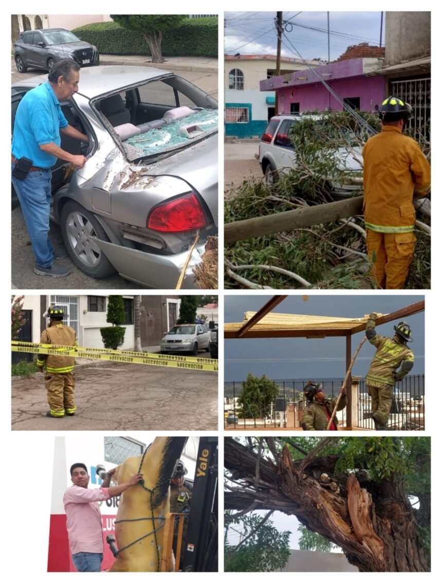 En tanto que en la Colonia José Ángel Leal, donde unas ramas de un árbol cayeron en cables de electricidad; ahí se trabaja con CFE para quitar corriente y poder maniobrar.