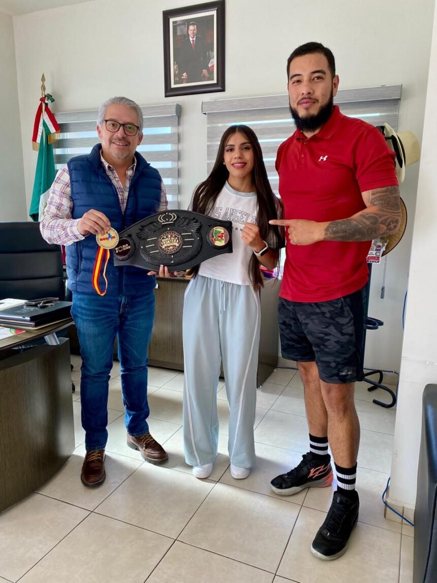 La boxeadora duranguense Valeria Sarahí Amparán Pizarro y su entrenador, Jesús Eduardo "Lalito" Bueno Torres, visitaron al director del IED para agradecer el respaldo institucional Por Luis Juárez Durango, Dgo.-…