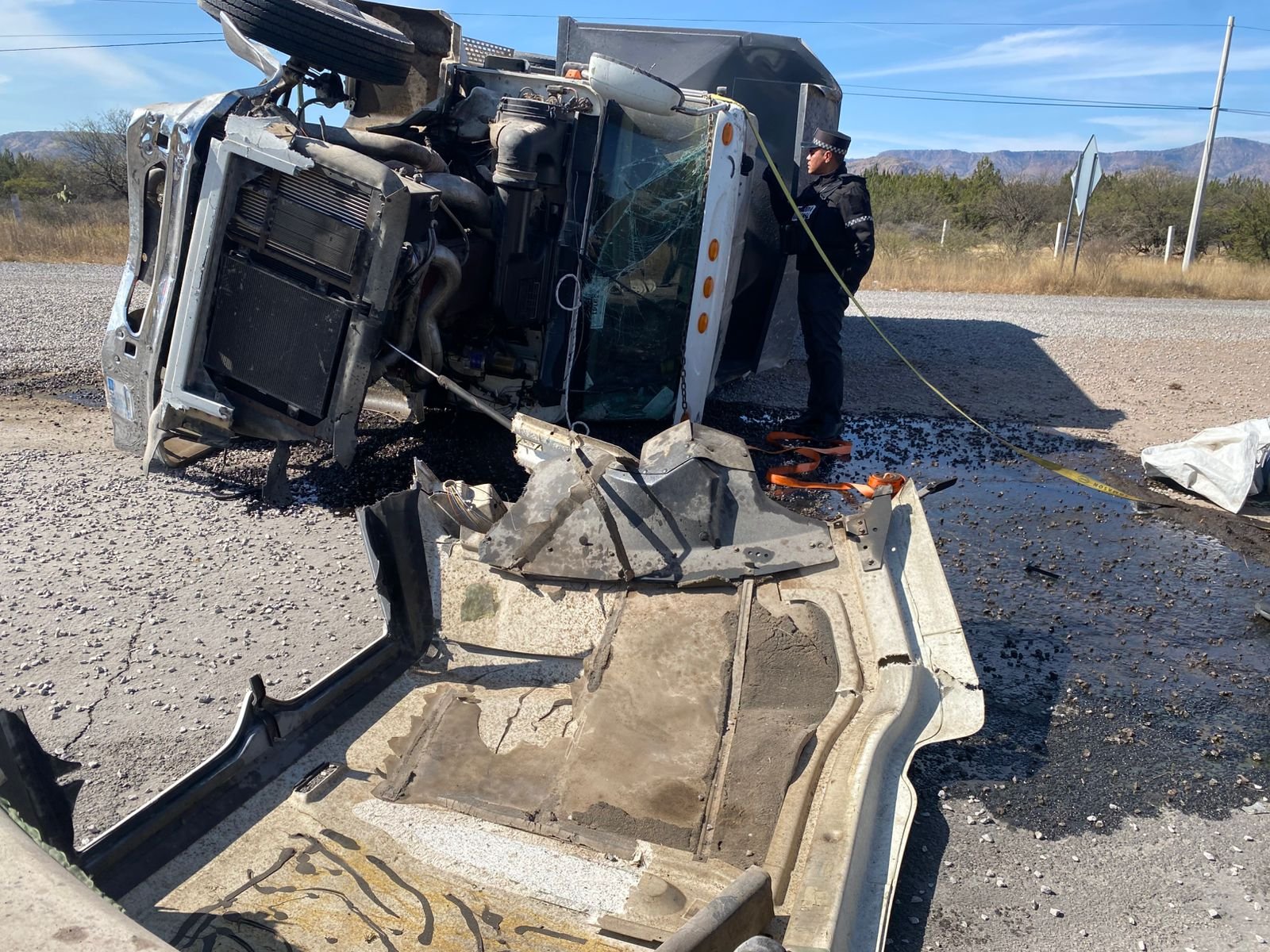 Bomberos atienden volcadura de Camión en Carretera a Parral