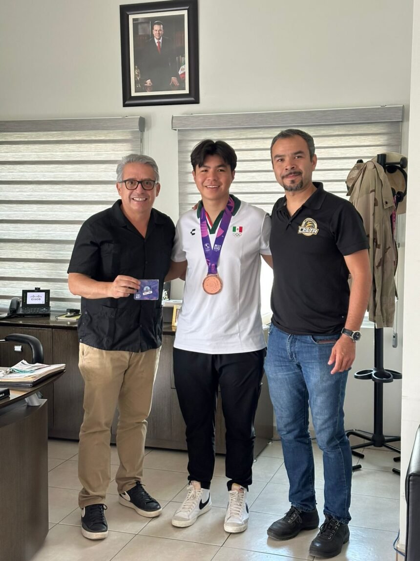 Tras su destacada participación en los Juegos Panamericanos Junior Asunción 2025, al conquistó la medalla de bronce, el taekwondoín duranguense Víctor Ramírez Ramírez fue recibido por el director del Instituto Estatal del Deporte (IED), César Omar Cárdenas Reyes, a quien mostró con orgullo la presea que reafirma el talento deportivo de la entidad.