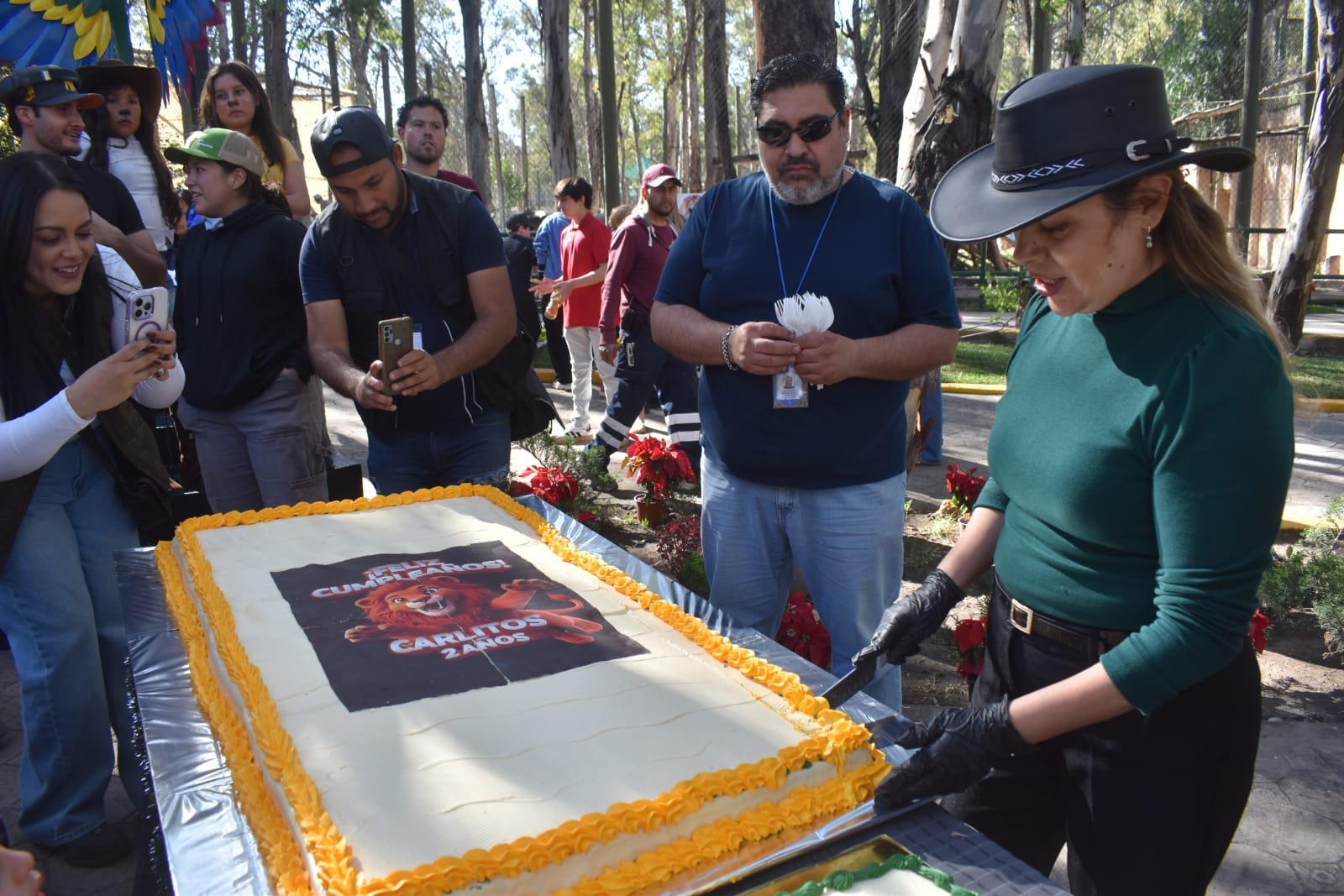 La fiesta incluyó enriquecimientos especiales, dinámicas para los visitantes, y muchas sorpresas que preparó el equipo del zoológico, quienes partieron el el pastel para Carlitos compartiendolobcon los peques que Iban caracterizados de león y acompañados de sus papás.
