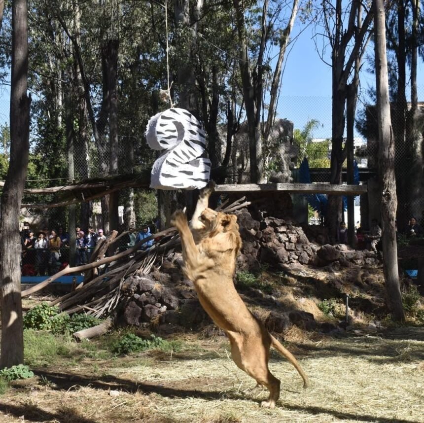 El pequeño felino celebró dos años de vida en su hogar en el Parque Sahuatoba, teniendo como invitados a más de 300 niños.