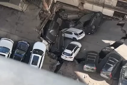 Varias personas quedaron atrapadas entre los escombros de un estacionamiento que colapsó…