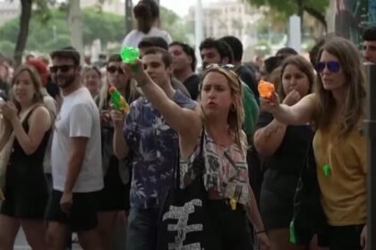 Manifestantes de Barcelona mojan a turistas en plena protesta