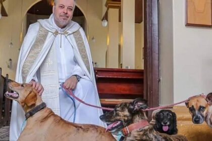 Sacerdote rescata perritos de la calle y los da en adopción durante misa