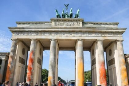 Las columnas de la Puerta de Brandeburgo han sido coloreadas por activistas medioambientales.