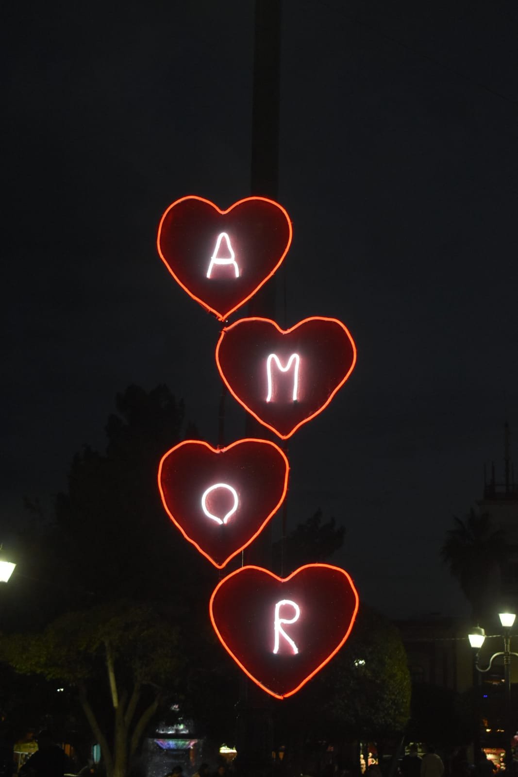 El Alumbrado consta de 193 figuras cómo corazones, cupidos y marcos para fotos, ubicados en Plaza de Armas, Corredor de Constitución y Parque Guadiana.