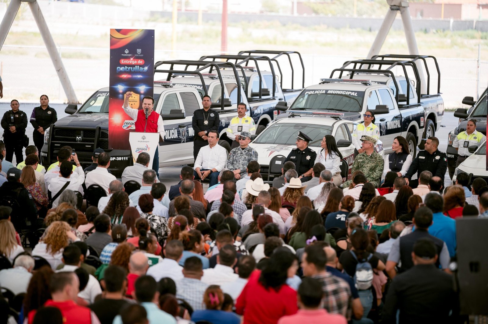 Por su parte, Luis Alberto Duarte Vázquez, director de Seguridad Pública de Gómez Palacio, destacó ante la presencia del secretario de Seguridad Pública del Estado, Óscar Galván Villarreal, que se trabaja en coordinación con la estrategia nacional para incrementar la presencia policial tanto en la zona urbana como en la ejidal, siempre al servicio de la comunidad y con el compromiso de hacer buen uso del nuevo equipo.