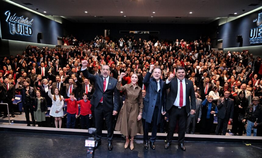 Acompañado por el gobernador Esteban Villegas Villarreal, destacó que este nuevo momento de la UJED no sería posible sin su respaldo cercano y permanente, pues ha acompañado a la institución en cada paso para recuperar su fuerza y su rumbo.García Rivera recordó que la Universidad enfrentaba retos importantes al inicio de su administración, entre ellos un adeudo histórico ante el SAT que detenía proyectos, programas y recursos esenciales.