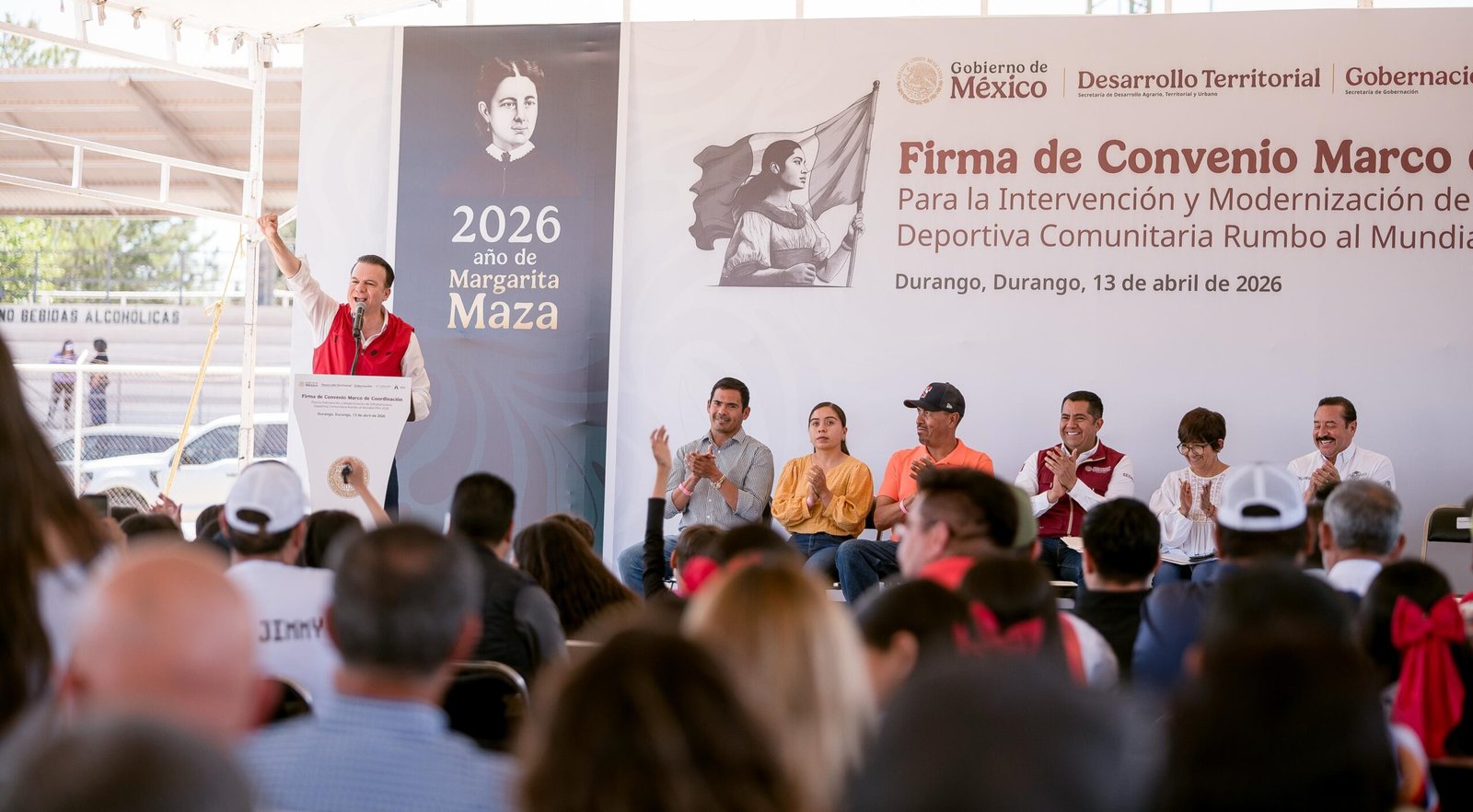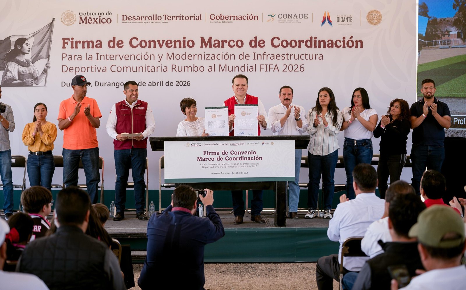Como parte de la estrategia nacional rumbo al Mundial 2026 del Gobierno de México, el gobernador Esteban Villegas Villarreal firmó con la secretaria de Desarrollo Agrario, Territorial y Urbano, Edna Vega Rangel, el Convenio Marco de Coordinación para la modernización de infraestructura deportiva comunitaria, que permitirá la construcción de 27 nuevas canchas y la rehabilitación de 11 más en 16 municipios del estado.