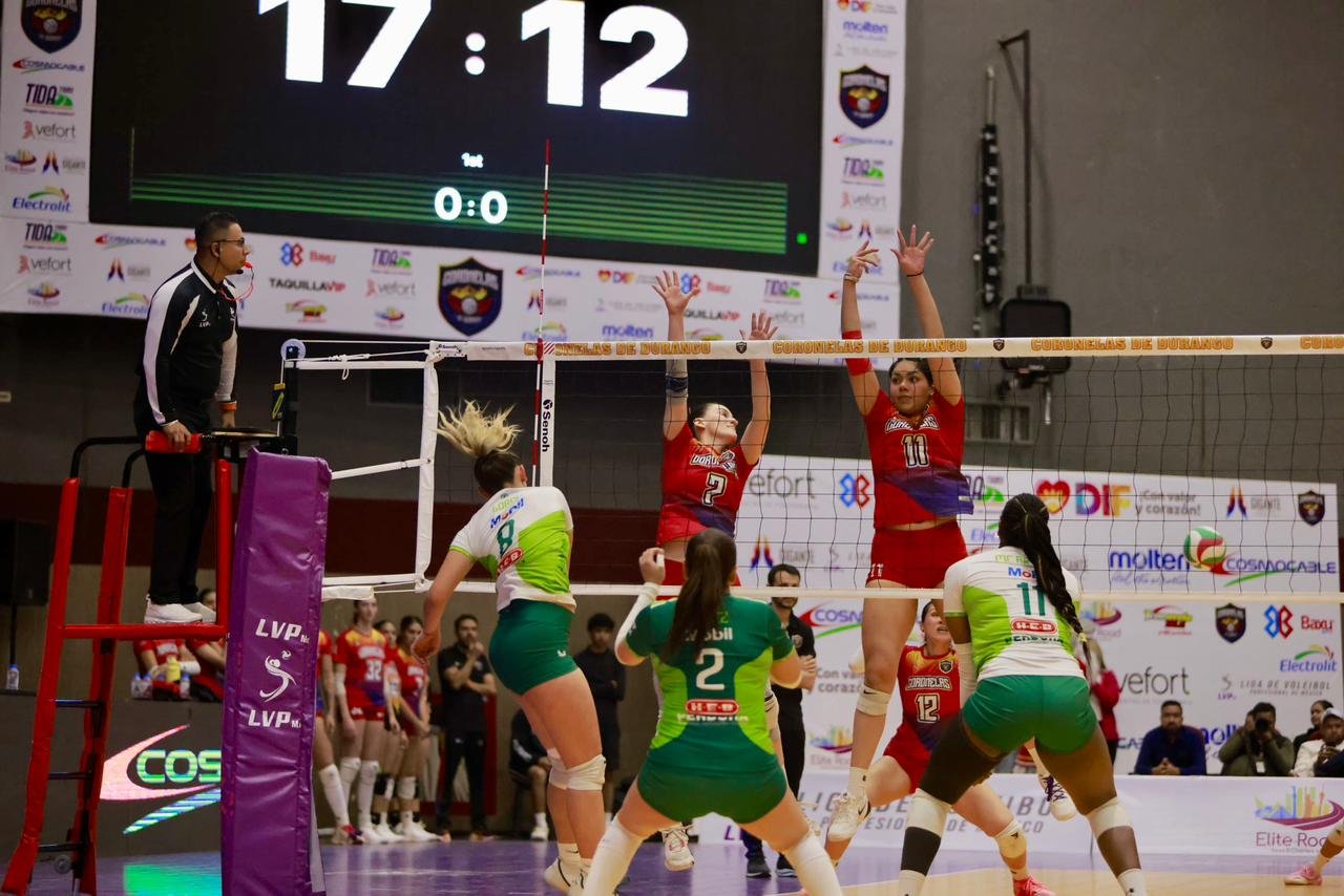 Durango, Dgo. – Las Coronelas de Durango demostraron esta noche el acero del que están hechas, tuvieron batalla dramática ante las Leonas, y con parciales de 25-21, 32-30 y 25-20 se llevan la victoria, para así reafirmar el liderato y el invicto en la Liga de Voleibol Profesional de México, ya 34 sets sin perder.