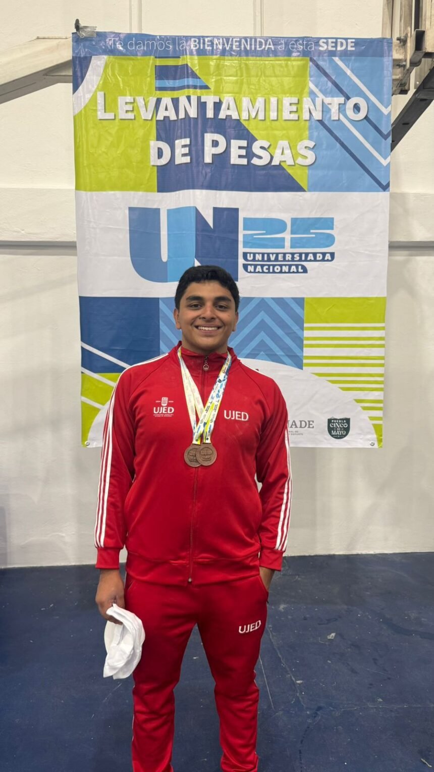 El representante de la Universidad Juárez del Estado de Durango (UJED) Emiliano López Bermúdez, quien actualmente cursa sus estudios en la Facultad de Derecho (FADER) en el sexto semestre, se hizo de dos medallas de bronces dentro de la Universiada 2025 Puebla, en la disciplina de halterofilia.