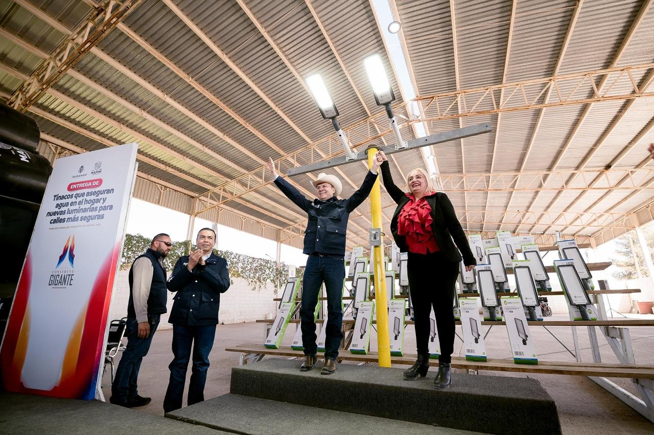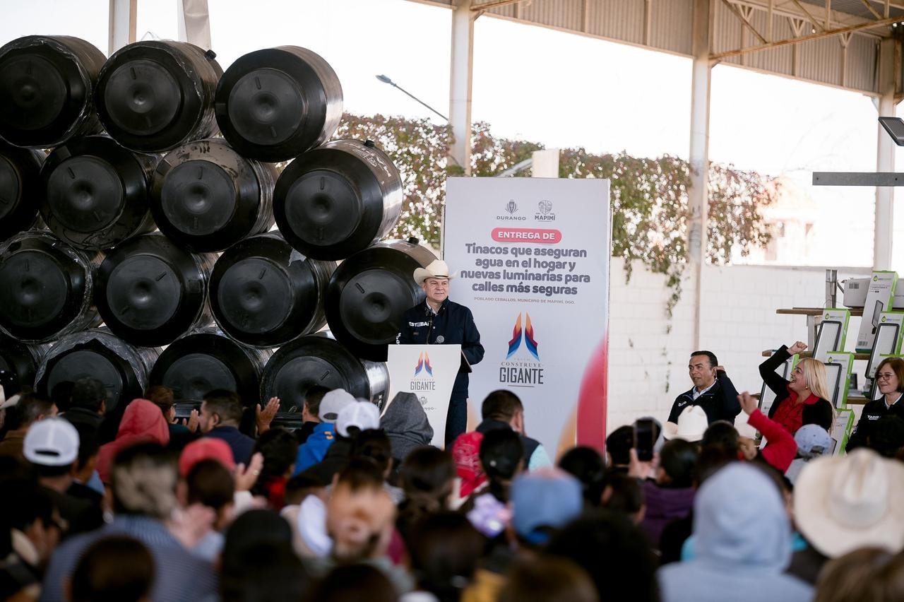Mapimí, Dgo.– En la localidad de Ceballos se realizó la entrega de mil 800 tinacos y 840 luminarias LED, como parte de un programa estatal y municipal orientado a mejorar el acceso al agua potable y el alumbrado público en diversas comunidades del municipio de Mapimí.