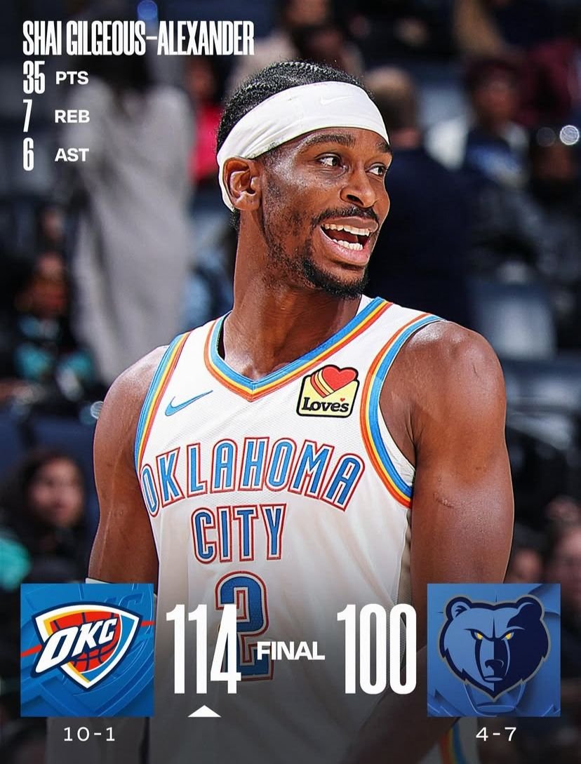 - Oklahoma Thunder 114-100 Memphis Grizzlies