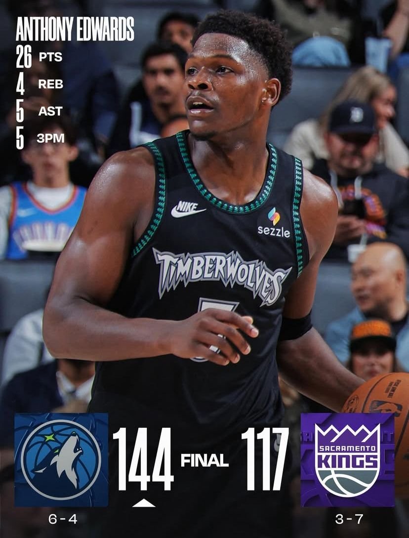 - Minnesota Timberwolves 144-117 Sacramento Kings