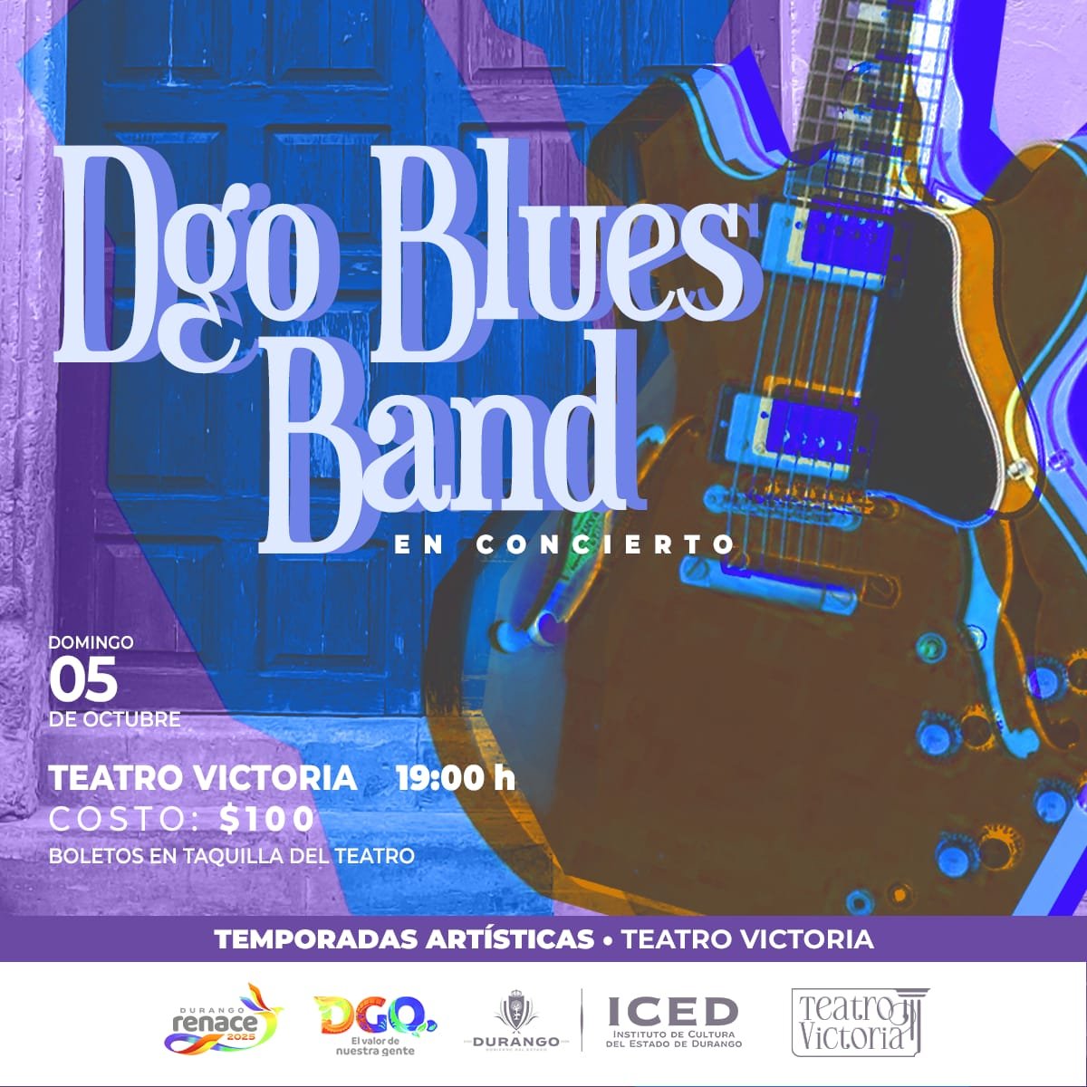El Teatro Victoria presenta un concierto especial de blues y folk con la reconocida Durango Blues Band, bajo la dirección del maestro Víctor Alejandro Benavente Vázquez. El evento tendrá lugar el domingo 5 de octubre a las 19:00 h y los boletos ya están disponibles en la taquilla del teatro por un costo de $100.00.