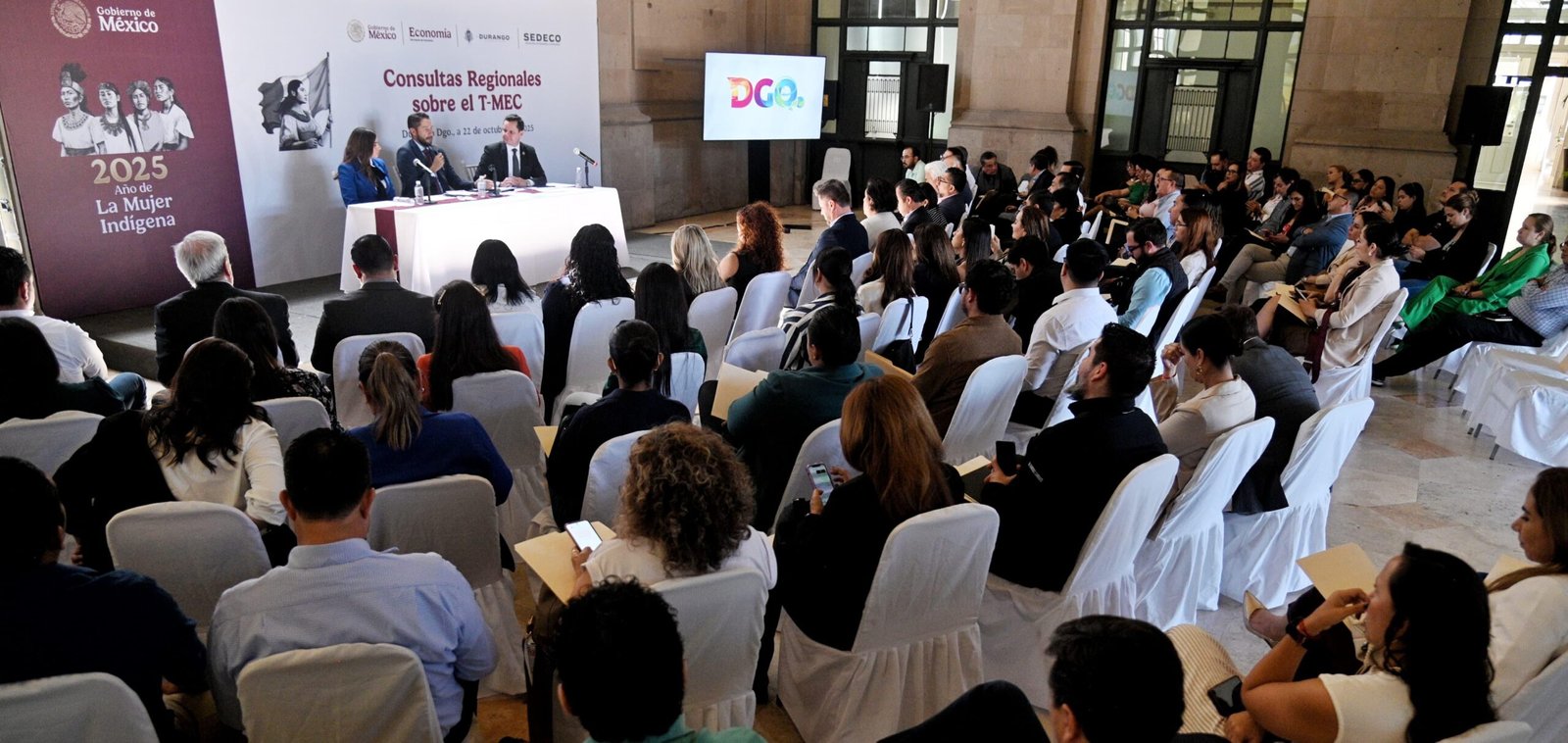 Durante el foro, que forma parte del proceso nacional de consulta rumbo a la revisión del T-MEC, participaron representantes de todos los sectores productivos de la entidad, quienes coincidieron en que Durango se encuentra en una posición estratégica para aprovechar las oportunidades del tratado mediante innovación, capacitación y vinculación internacional.
