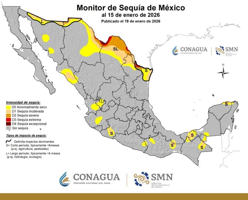 Durango forma parte de los 2 mil 168 municipios del país que actualmente se encuentran libres de sequía, de acuerdo con el más reciente reporte del Monitor de Sequía en México, con corte al 15 de enero de 2026, elaborado por el Servicio Meteorológico Nacional (SMN) de la Comisión Nacional del Agua (Conagua).
