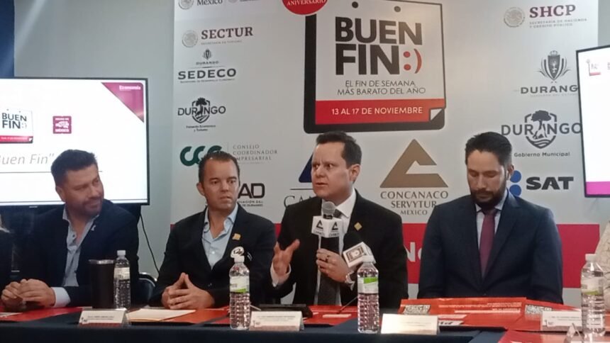 Del 13 al 17 de noviembre, el comercio duranguense vivirá la 15ª edición del #BuenFin con la meta de superar los mil millones de pesos en ventas 💰 en Durango Más de 5,400 comercios locales se preparan para ofrecer promociones, descuentos y productos con el sello #HechoEnMéxico 🇲🇽, en coordinación con la Secretaría de Economía Federal y la Canaco Durango.