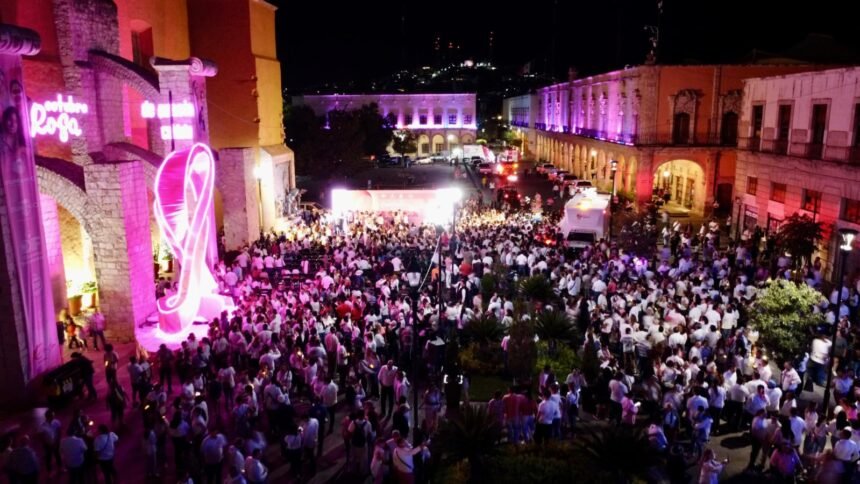 Se prendió una luz de esperanza y unidad en Durango con el encendido de las luces rosas en el centro histórico y la entrega de un mastógrafo móvil que recorrerá las comunidades más alejadas del estado.