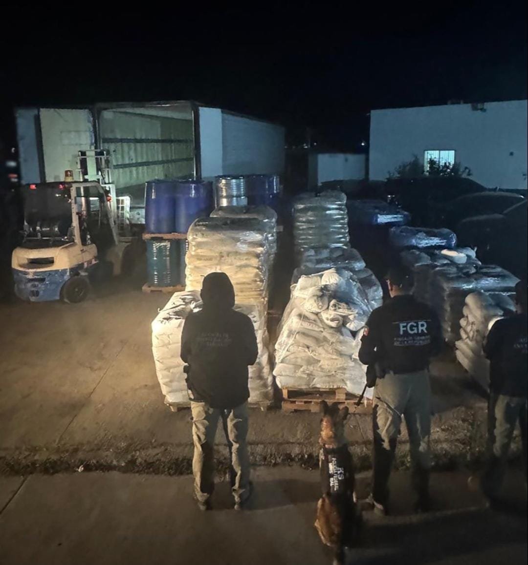 Durante la inspección, los agentes identificaron diversos materiales con características de precursores químicos, por lo que procedieron a su aseguramiento.