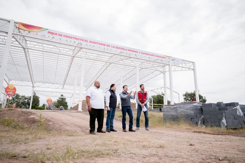 En compañía del secretario de Educación, Guillermo Adame Calderón, el titular del Instituto para la Infraestructura Física, Educativa del Estado, (INIFEED) Emmanuel del Palacio Sicsik y el director de la Escuela Normal Rural J. Guadalupe Aguilera, Miguel Páez, el Gobernador señaló que la educación sigue siendo una prioridad para su administración y que este auditorio representa una inversión directa en la calidad de vida de la comunidad estudiantil.Villegas Villarreal adelantó que la obra estará concluida durante el segundo trimestre de 2026, para coincidir con el centenario de la Escuela Normal Rural J. Guadalupe Aguilera.