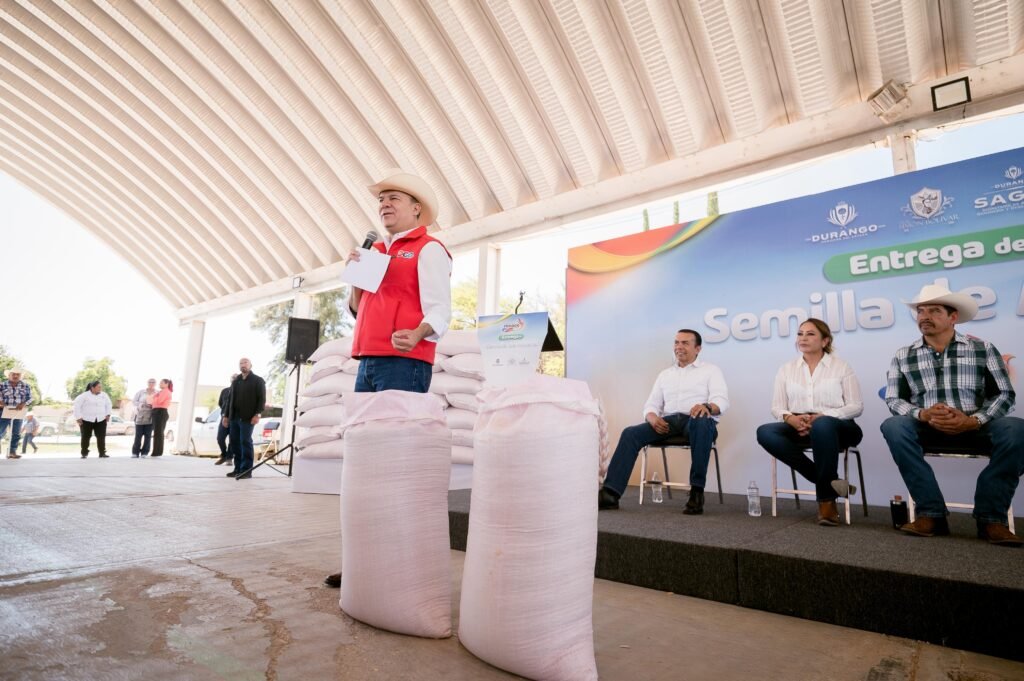“Ya no sabemos cómo vendrá el clima. Por eso nos tenemos que adelantar, captar el agua de lluvia y asegurar alimento para el ganado. Nos vamos a seguir adelantando con más obras hídricas y semilla de calidad como esta”, comentó Villegas Villarreal ante productores y familias de la región.