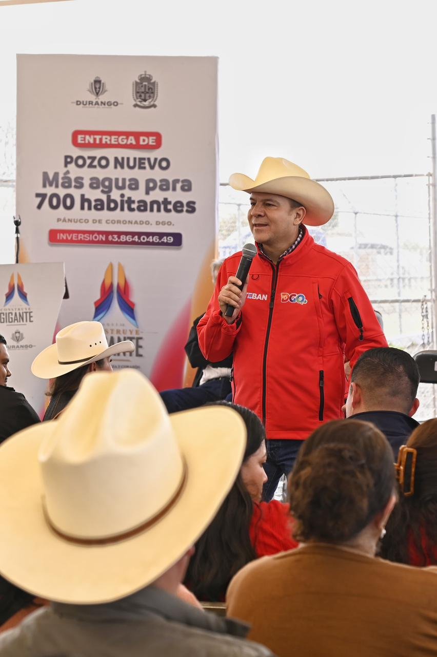 Pánuco de Coronado, Dgo.- Con una inversión cercana a los 8.2 millones de pesos en obras y apoyos sociales, el gobernador Esteban Villegas Villarreal puso en marcha un nuevo pozo de agua en la localidad de Francisco I. Madero, que garantiza el abasto para 700 habitantes de las colonias Valparaíso y Bella Vista.