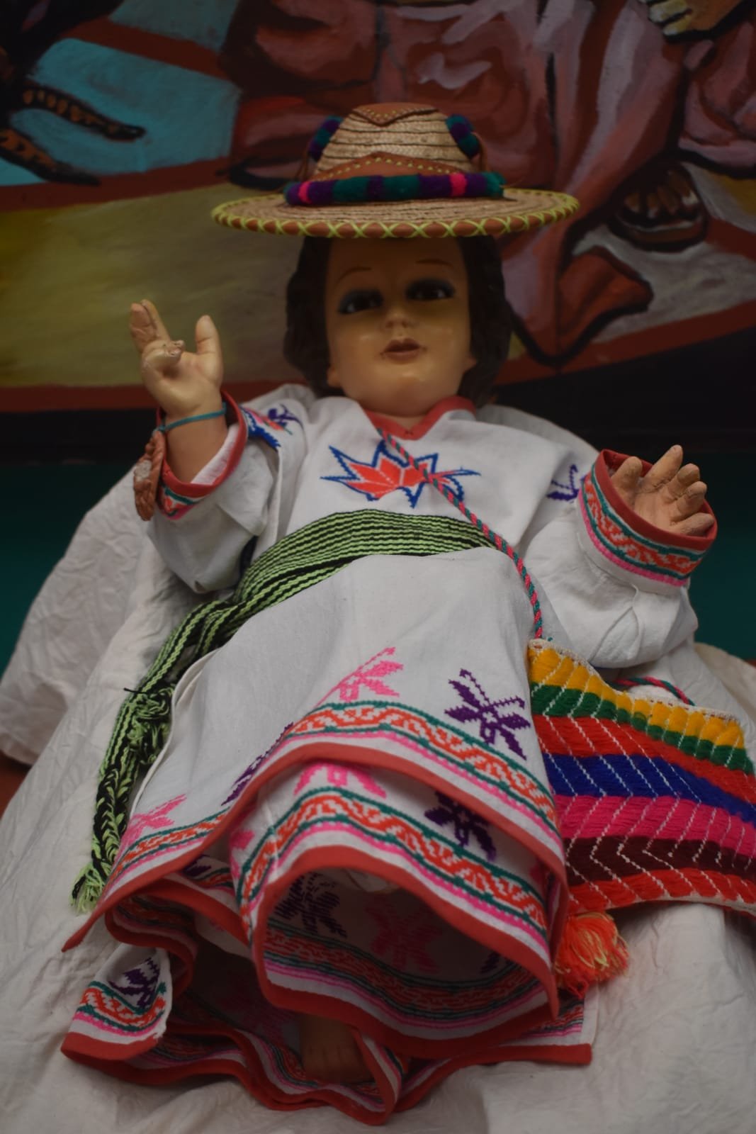 La exhibición presenta diversas imágenes del Niño Dios ataviadas con vestimentas elaboradas por familias duranguenses, quienes participaron activamente en esta costumbre que simboliza la presentación del Niño Jesús en el templo y el cierre del ciclo navideño.