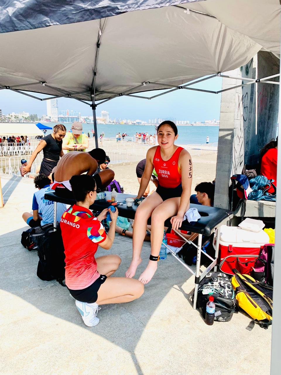 La atención no se limita a la competencia. Los fisioterapeutas acompañan a los atletas desde el calentamiento hasta la recuperación posterior, incluso con seguimiento en concentración cuando se requiere tratamiento adicional.
