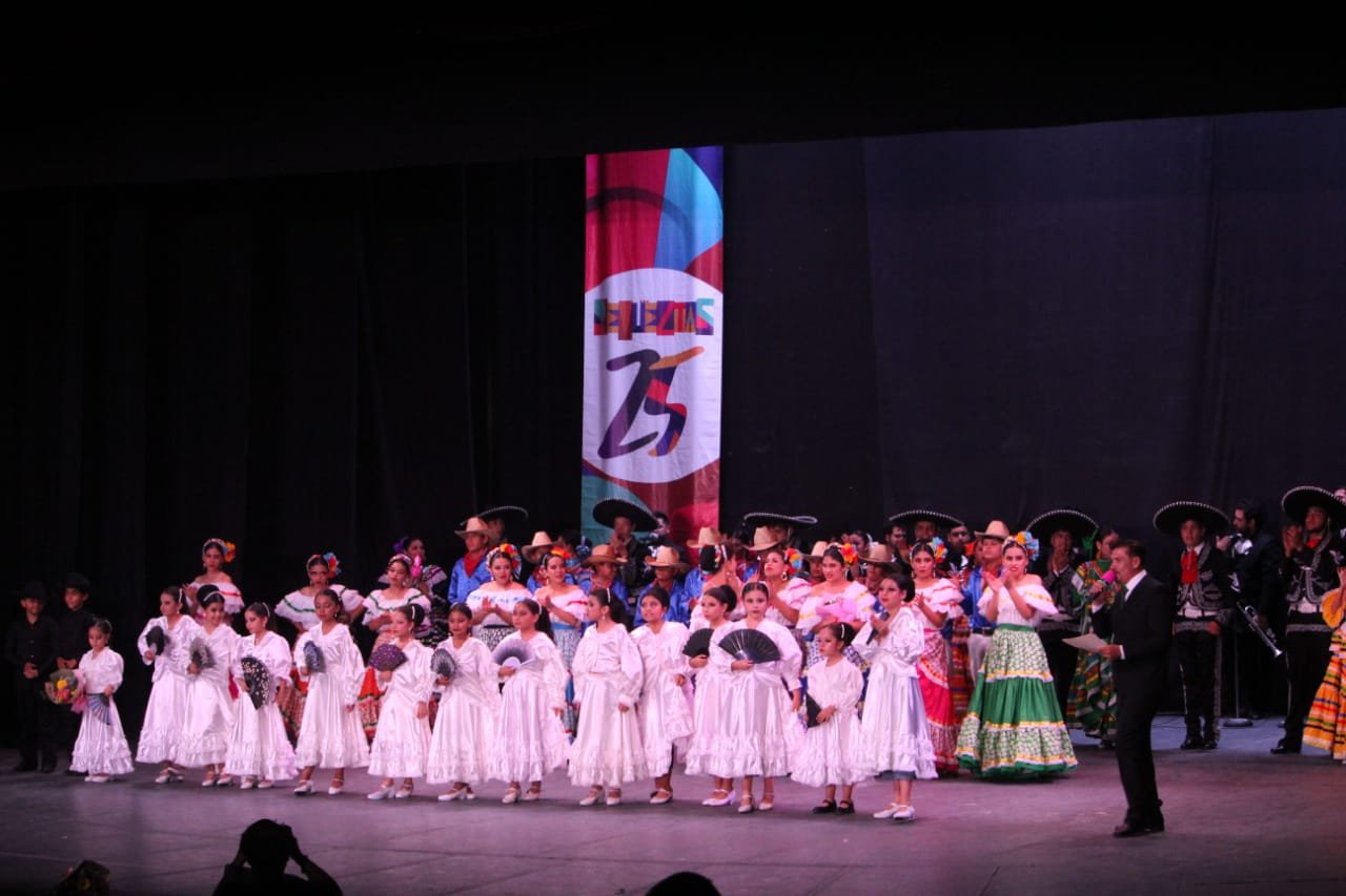El festejo se desarrolló en dos etapas, con un intermedio que permitió disfrutar de la voz de la talentosa Kenia Fernández, quien cautivó al público con su interpretación.En la primera parte del programa, el público disfrutó de danzas tradicionales de Tamaulipas, Guerrero y Tabasco, mientras que la segunda etapa ofreció un recorrido por los ritmos y colores de Yucatán, Nuevo León (Linares) y Sinaloa.