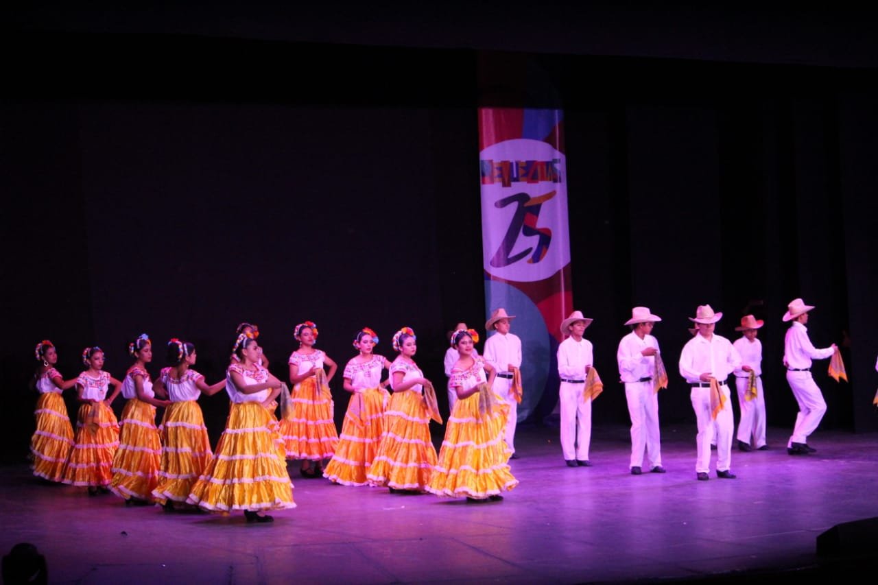 En el marco del Festival Revueltas 2025, el escenario del Teatro Ricardo Castro se llenó de color, música y orgullo mexicano con la celebración del XV aniversario del Grupo Folklórico Aztlán, integrado por alumnas y alumnos de diversas edades, desde nivel infantil hasta adultos, quienes también forman parte de distintas instituciones educativas de la capital duranguense.