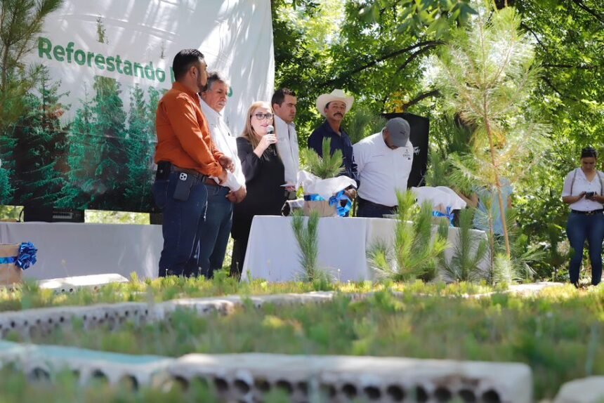 En esta ocasión, se realizó la entrega de 200 mil plantas de pinus cooperii y pinus engelmannii para 28 ejidos más, los cuales sumarán en una primera etapa un millón y medio de ejemplares para municipios de la zona serrana.