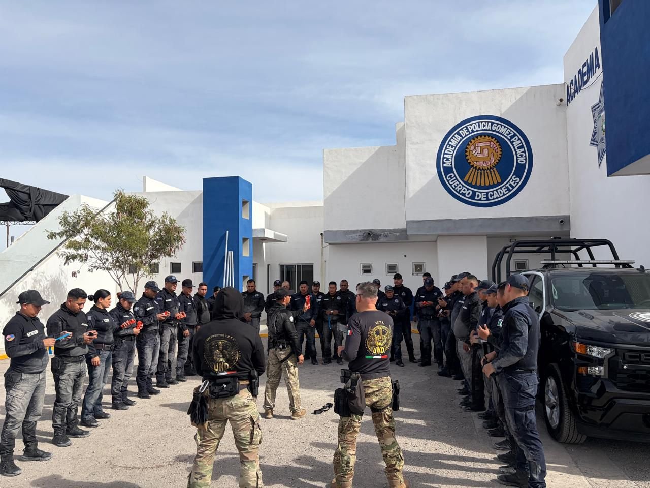 Gómez Palacio, Dgo. – La capacitación especializada para elementos de la Dirección de Seguridad Pública Municipal continúa en Gómez Palacio, consolidando a la ciudad como el primer municipio del país en recibir el curso de Tácticas y Técnicas de Reacción, impartido por la Secretaría de Seguridad y Protección Ciudadana del Gobierno de México.