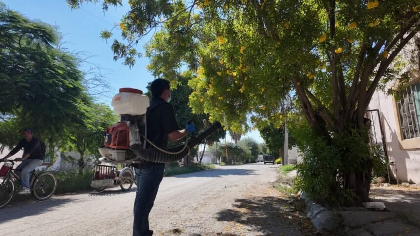 Con el fin de proteger la salud de las familias, la Dirección Municipal de Salud realizó labores de fumigación contra el dengue en el fraccionamiento Rinconadas Hamburgo, informó el titular de la dependencia, Luis Bañuelos Garza, quien dijo que se trata de acciones preventivas para evitar la propagación del mosquito transmisor y mantener espacios seguros para la comunidad.