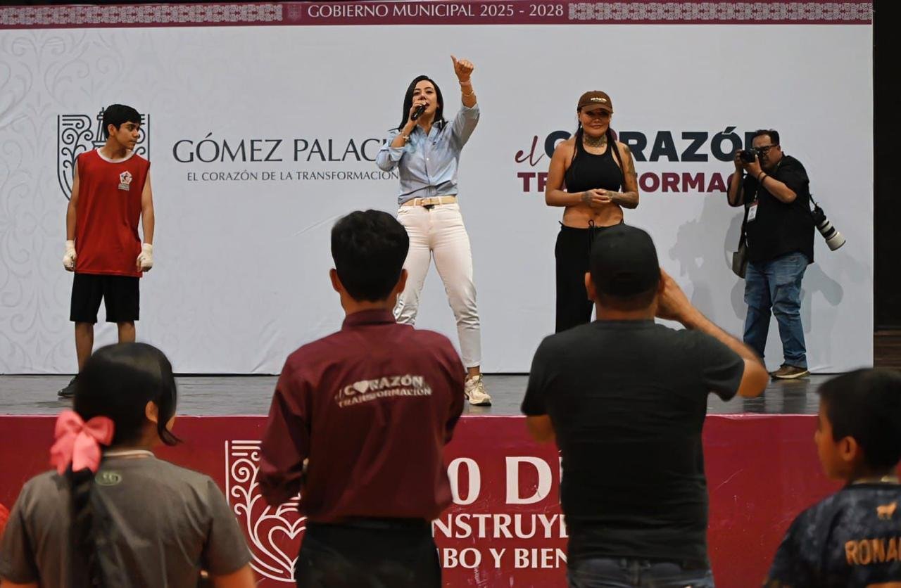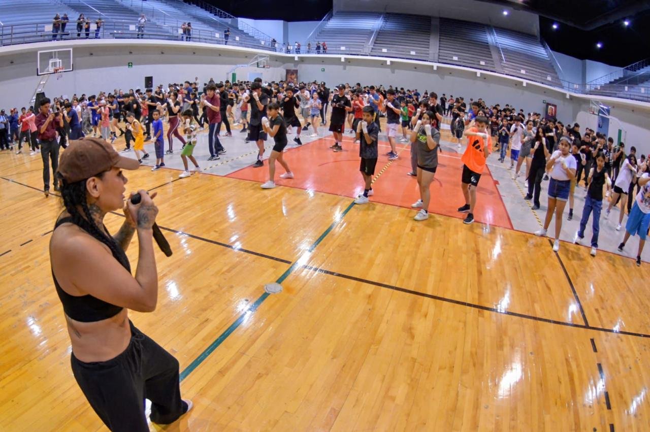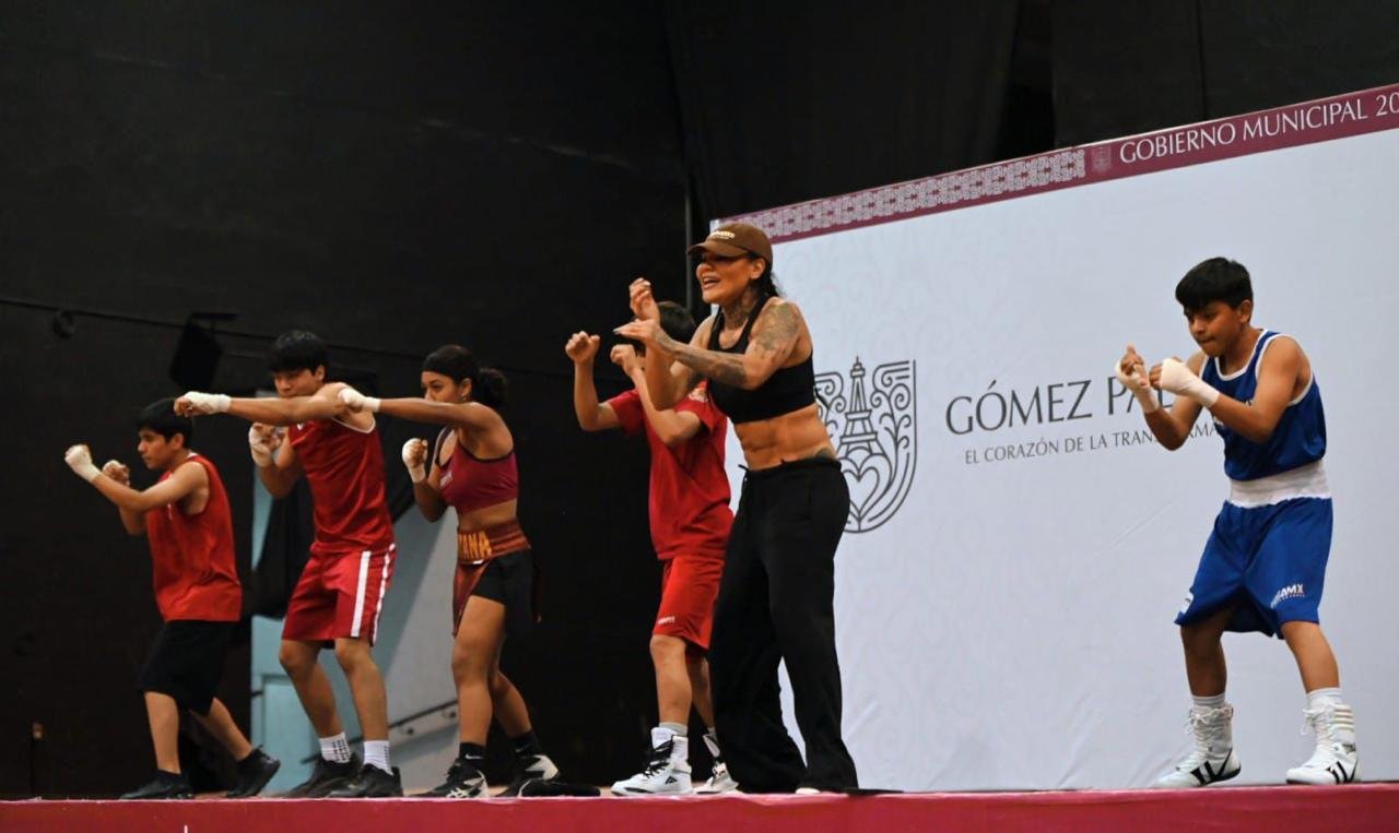 Gómez Palacio, Dgo. – El boxeo tomó protagonismo en Gómez Palacio con una intensa clase masiva que reunió a más de 200 niñas, niños y jóvenes en el Auditorio Centenario de la Expo Feria. La sesión estuvo encabezada por la campeona Mariana Juárez, quien compartió técnica, disciplina y motivación con las nuevas generaciones.