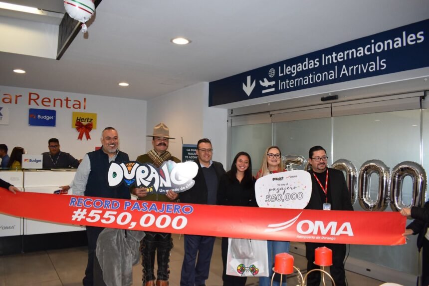 El Aeropuerto Internacional de Durango celebró la llegada del pasajero número 550 mil, una cifra histórica que confirma el crecimiento sostenido del flujo de visitantes y el fortalecimiento de la conectividad aérea del estado.