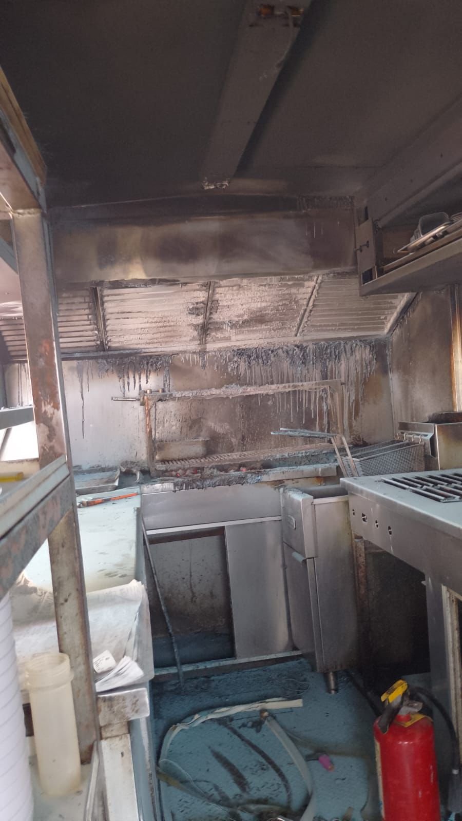 El reporte fue atendido por bomberos, quienes llegaron y encontraron el fuego en un camión utilizado como cocina