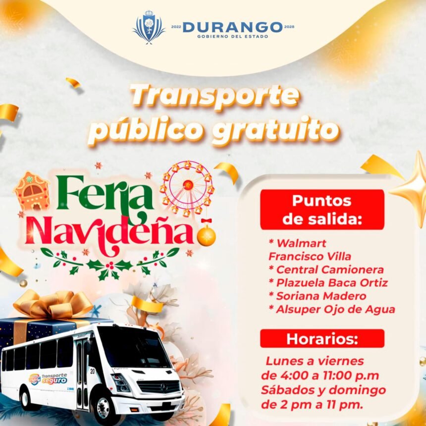Para mayor comodidad, se ofrecerá transporte gratuito desde Walmart Francisco Villa, Central Camionera, Plazuela Baca Ortiz, Soriana Madero y Alsuper Ojo de Agua, facilitando que más familias vivan esta experiencia navideña.