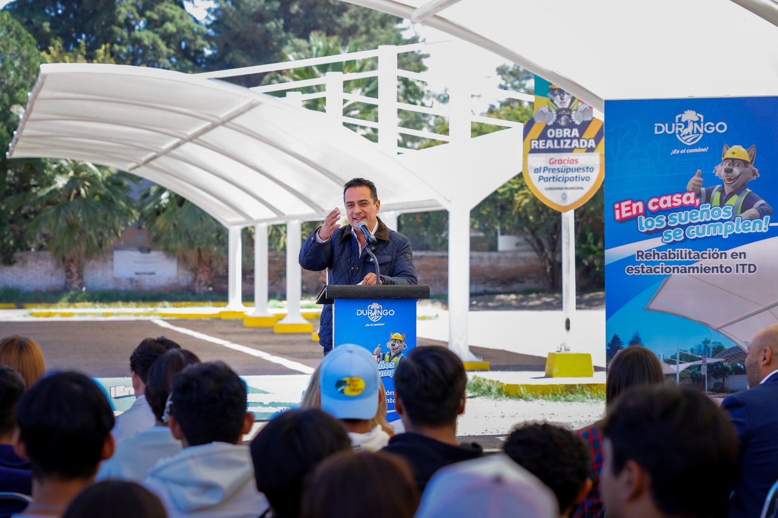 La comunidad del Instituto Tecnológico de Durango (ITD) cuenta con una nueva velaría, gracias al Presupuesto Participativo (PP) y la participación de más de 14 mil estudiantes y personal académico. El presidente municipal, Toño Ochoa, entregó la obra y destacó que el PP ha sido un éxito, con 528 proyectos recibidos en la 4ª edición.