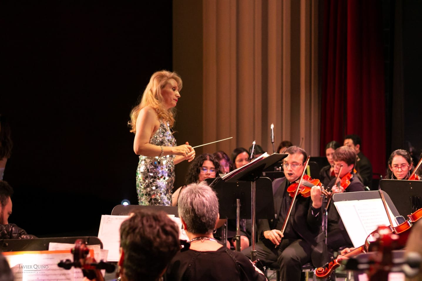 La Orquesta Sinfónica Cesaretti, bajo la dirección de Clementina Montenegro Cesaretti, presentó un programa que combinó lo sinfónico con clásicos del rock y la música disco en el marco del Festival Revueltas 2025.