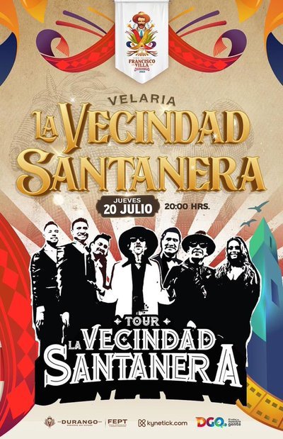 La mezcla de ritmos de la Maldita Vecindad y la Sonora Santanera llega con su tour “La Vecindad Santanera” a la Feria Nacional Francisco Villa Durango 2023, con una fusión de cultura, tradición y música, este gran concierto se llevará a cabo este jueves 20 de julio en la Velaria, iniciando en punto de las 20:00 horas.