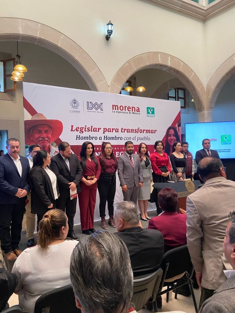 Diputados locales de las fuerzas políticas de Movimiento de Regeneración Nacional y Partido Verde Ecologista de México, se reunieron al interior del Honorable Congreso del Estado de Durango para dar a conocer ante medios de comunicación su visión legislativa entorno a 11 ejes, mismo evento que contó con la presencia de la presidenta del Comité Ejecutivo Estatal de Morena Lourdes García Garay y el diputado federal del Verde Gerardo Villareal.