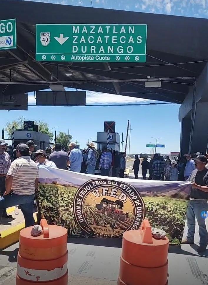 Bajo la consigna de que el Gobierno federal “les da atole con el dedo”, productores de frijol de la región de los Llanos tomaron la caseta de cobro de Gómez Palacio para exigir una solución al problema del acopio.